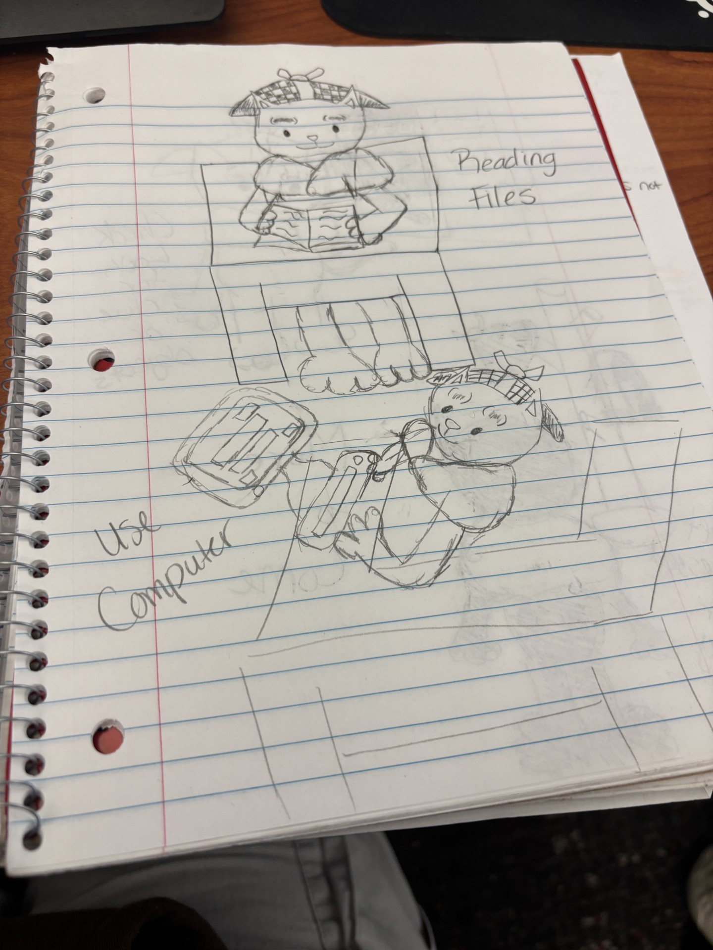 The setting I decided on was multiple rooms on one map, there is a detective office, storage/evidence room in the back, then an outside area with a bench, tree and grass. I have an idea for my game, but it might change as I bring my game more to life. This is just a rough draft so far but many of the basic designs for the map are complete. I will add more soon, so look out for new updates. I am currenting working on new possible animation and interactive plans for my game for each room. I also made a new character for my game, his name is Detective Kittenburg and he is a really busy cat. I made many major updates to my room character and walkability for my room. I still need to improve on many things but so far, I am happy and satisfied with my progress so far with this project.
